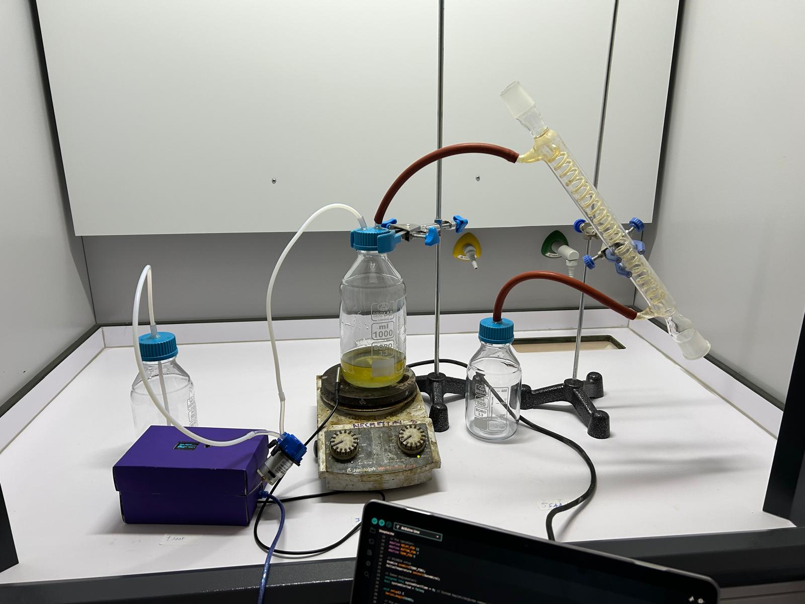 To bridge theory and practice, we designed a miniature biodiesel production device capable of processing small batches, allowing us to test feasibility, efficiency, and scalability in a controlled setting.